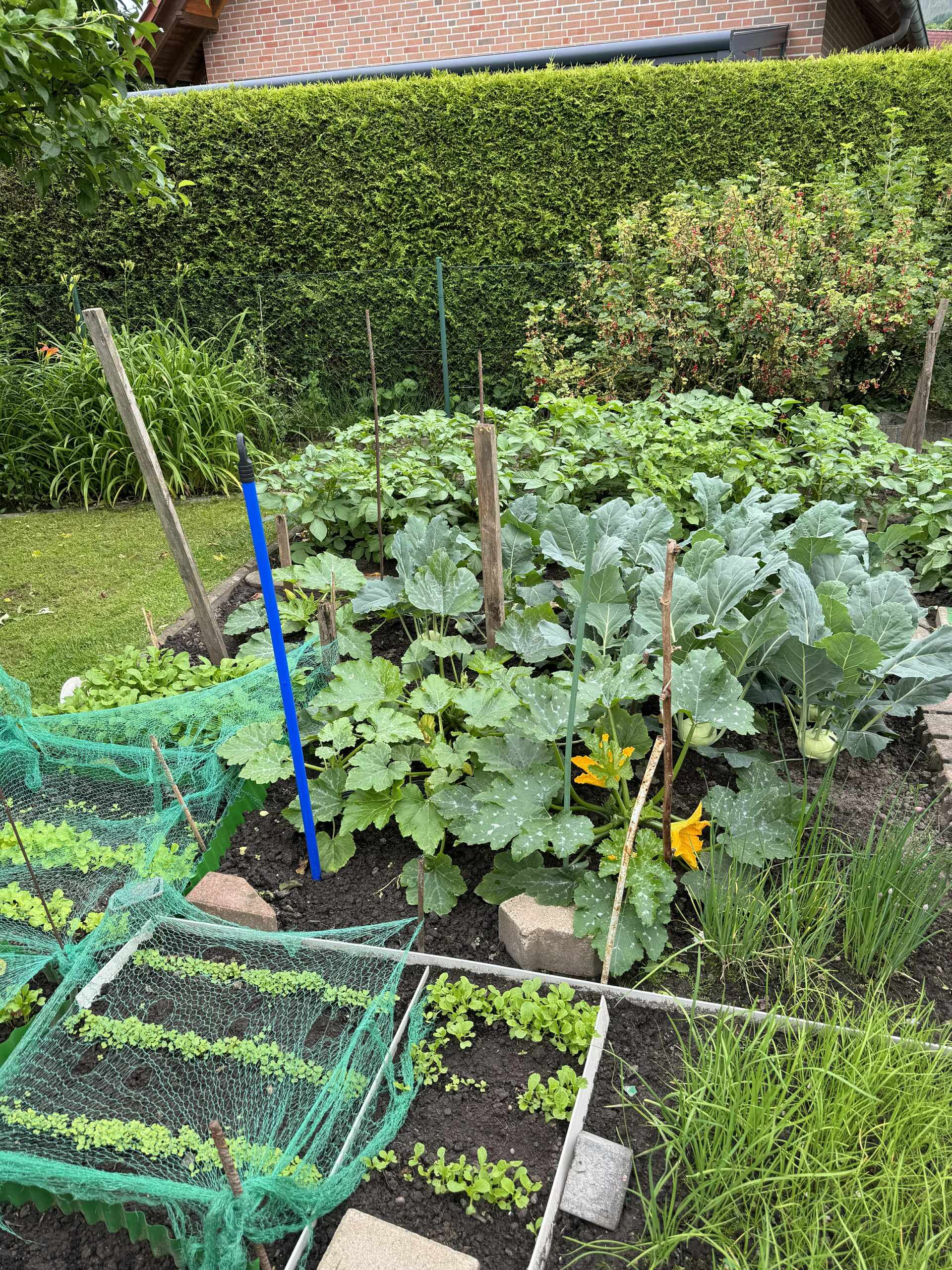 Trong vườn, ông trồng táo, cherry, lê, mận. Mùa hè, ông sẽ trồng các loại rau như khoai tây, bí ngòi, cải, cà chua, bí xanh, su hào, các loại rau thơm Việt Nam... Tùy theo mùa, ông trồng thêm trái cây ngắn ngày như dâu chuỗi ngọc, phúc bồn tử.