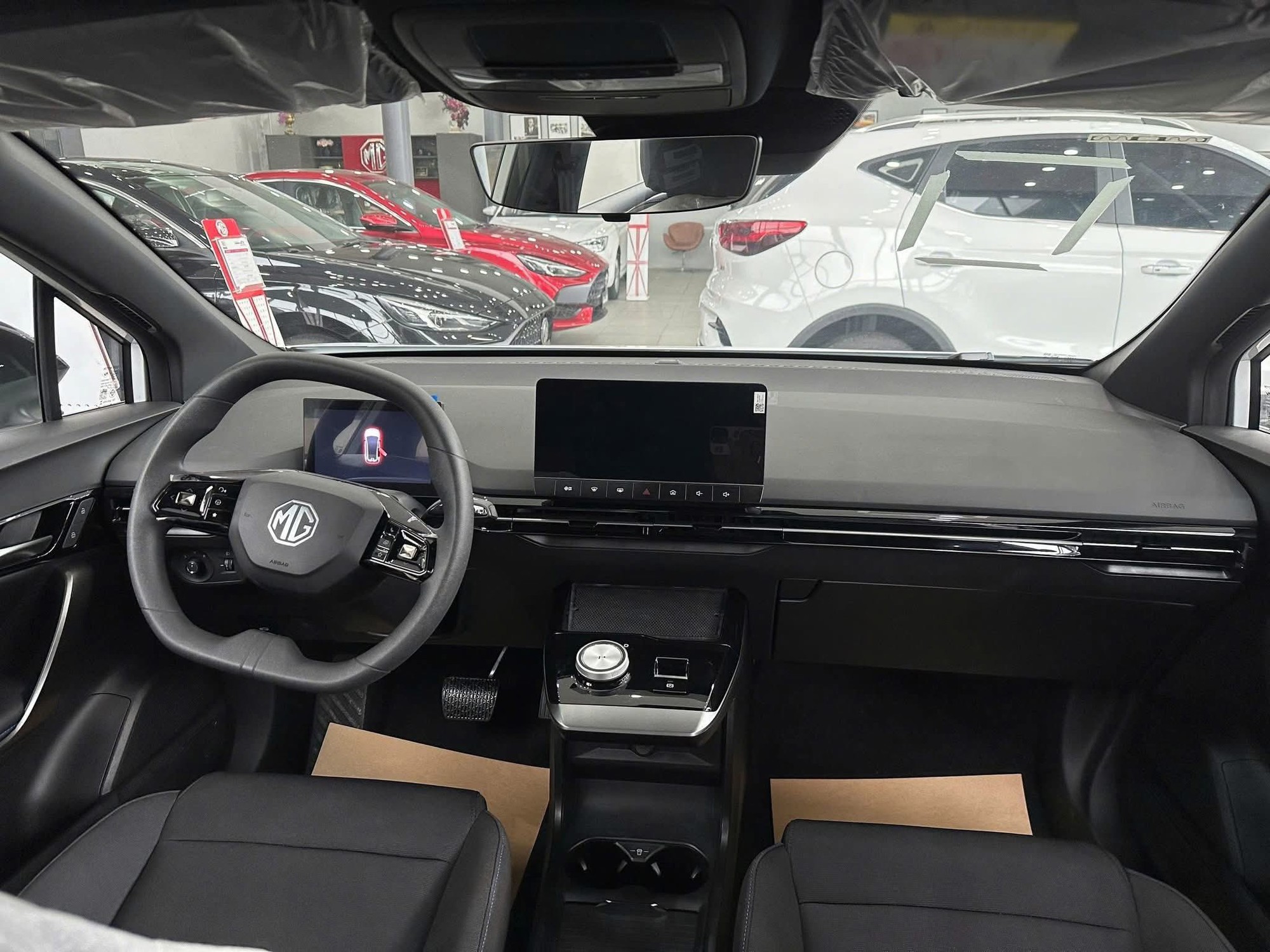 Không gian nội thất của MG4 EV được thiết kế theo hướng tối giản. Xe sử dụng vô-lăng 2 chấu dạng D-cut bọc da, tích hợp các phím điều khiển chức năng. Sau vô-lăng là cụm đồng hồ kỹ thuật số kích thước 7 inch, trong khi trung tâm bảng táp-lô là màn hình cảm ứng 10,25 inch hỗ trợ Apple CarPlay và Android Auto.