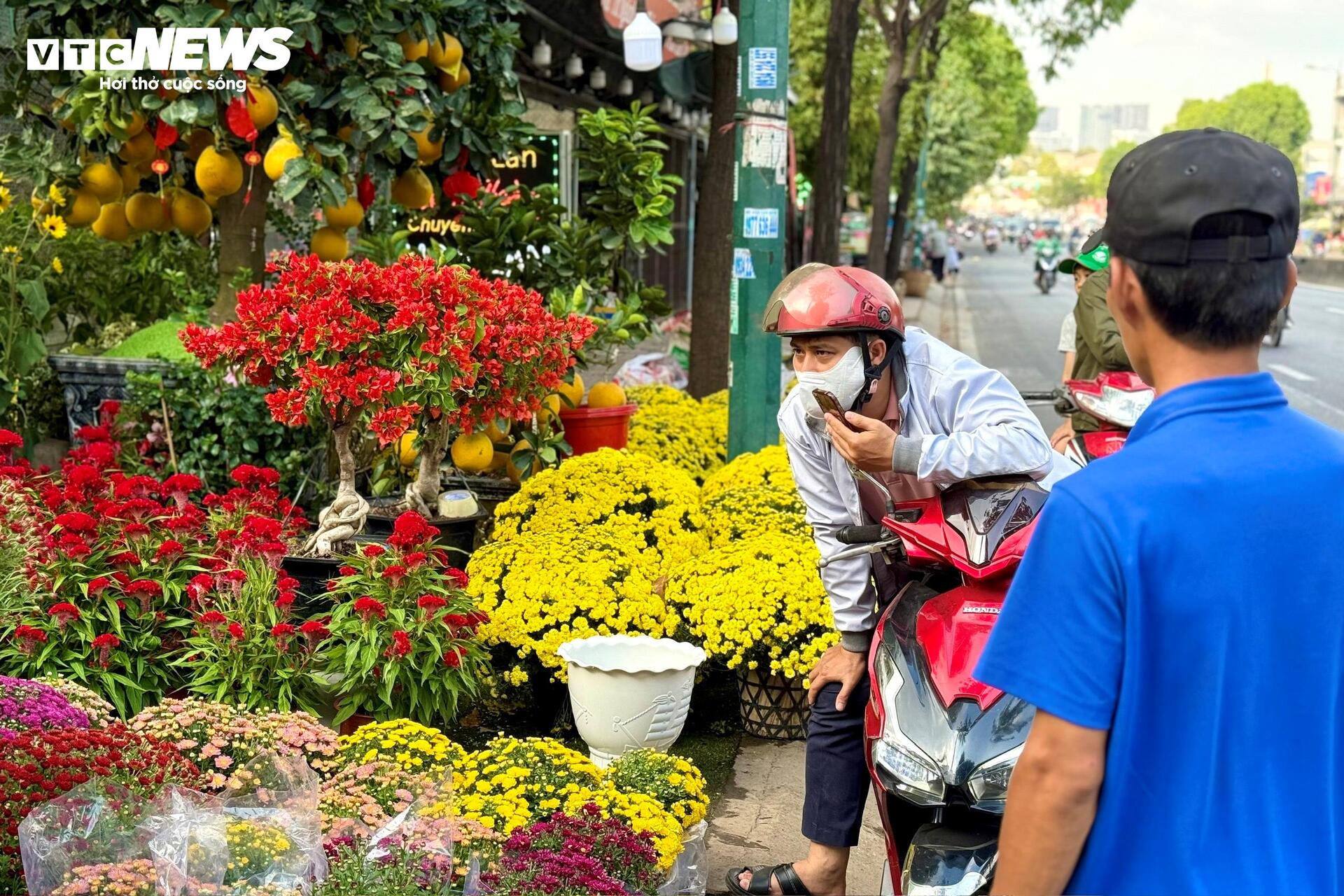 Ghi nhận của PV Báo Điện tử VTC News ngày 17 tháng Chạp tại đường Phạm Văn Đồng (TP Thủ Đức cũ), dù giữa trưa nhưng người dân vẫn đổ về đây để "tậu" hoa trưng Tết.