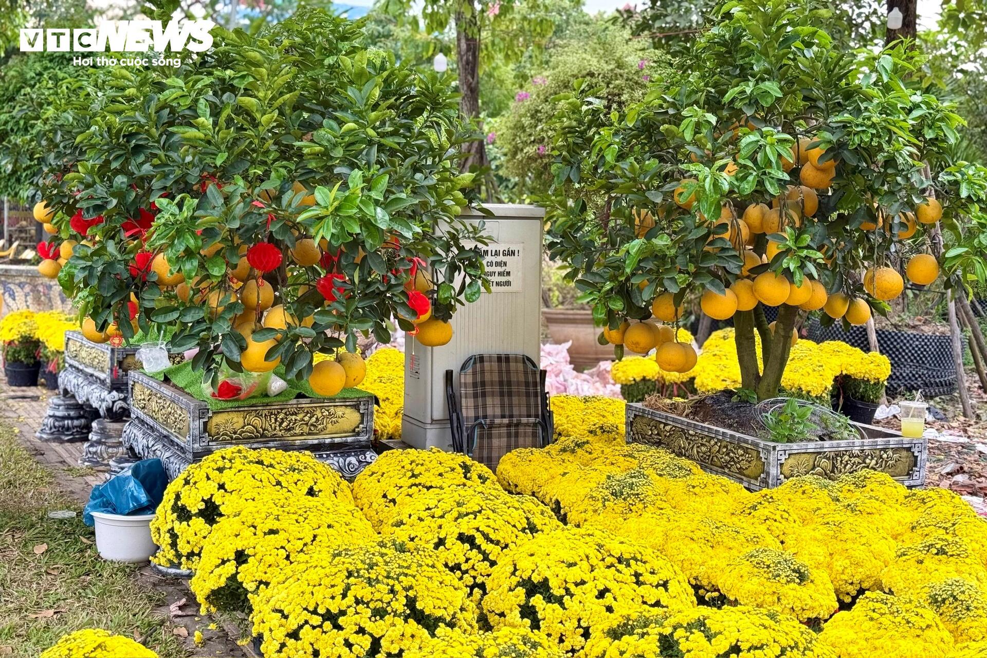 Theo anh Bình, so với năm ngoái, giá hoa Tết năm nay không thay đổi. Cúc mâm xôi có giá 75.000 đồng/chậu, bưởi có giá 7 - 200 triệu đồng/chậu - tuỳ kích cỡ, quất có giá 2 - 50 triệu đồng/chậu...