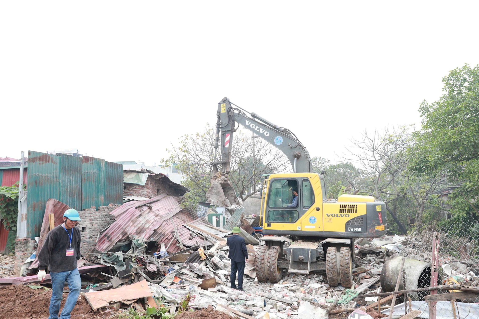 Lãnh đạo phường Hoàng Mai trực tiếp chỉ đạo công tác cưỡng chế tại hiện trường. Ảnh: Phong Thu