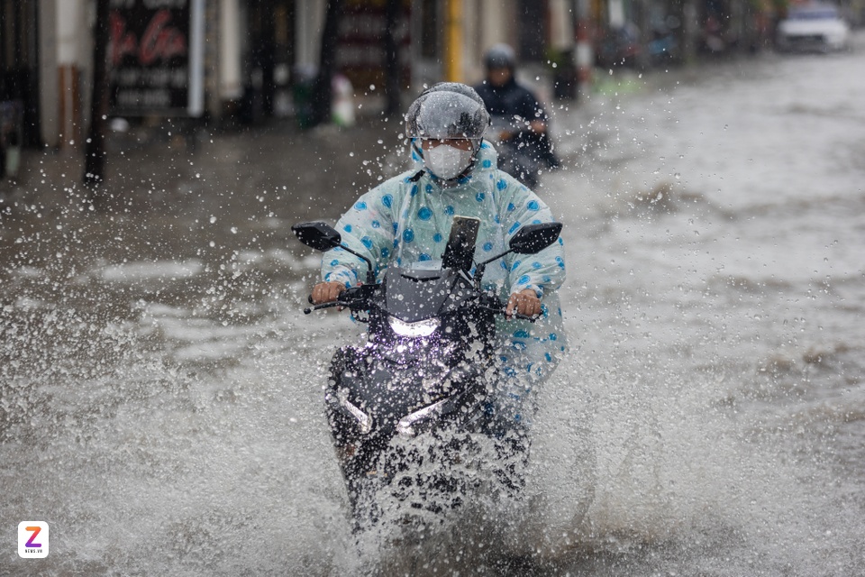 Người dân di chuyển trên tuyến đường mưa ngập chiều 28/10 tại TP.HCM. Ảnh: Khương Nguyễn. |