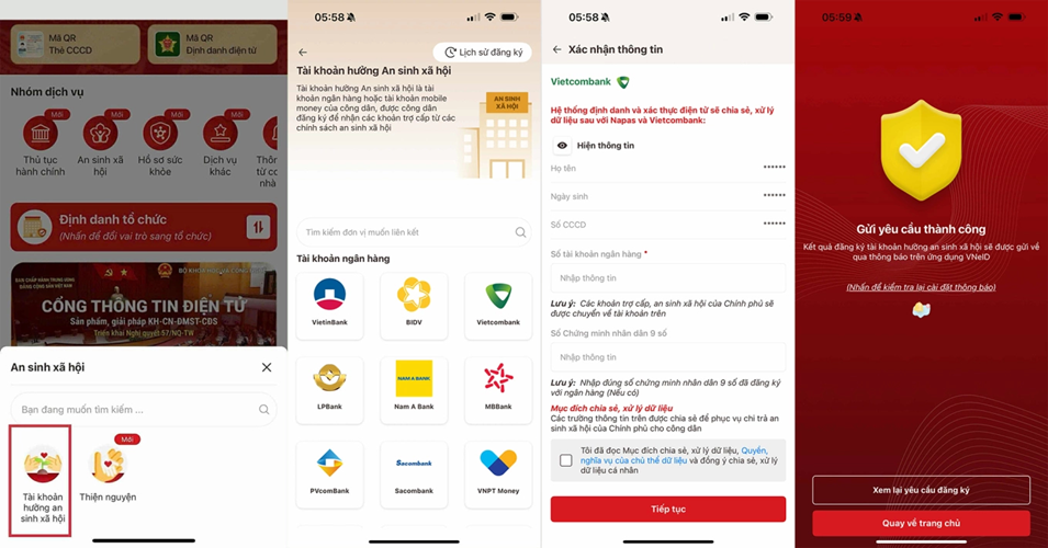 Các bước tích hợp tài khoản ngân hàng vào tài khoản An sinh xã hội trên VNeID.
