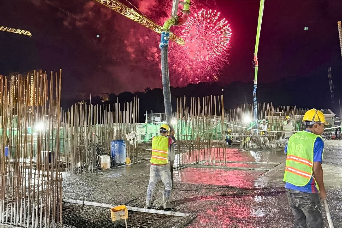 Không khí lao động khẩn trương trên công trường thể hiện quyết tâm của các đơn vị thi công trong việc đưa dự án về đích đúng kế hoạch.