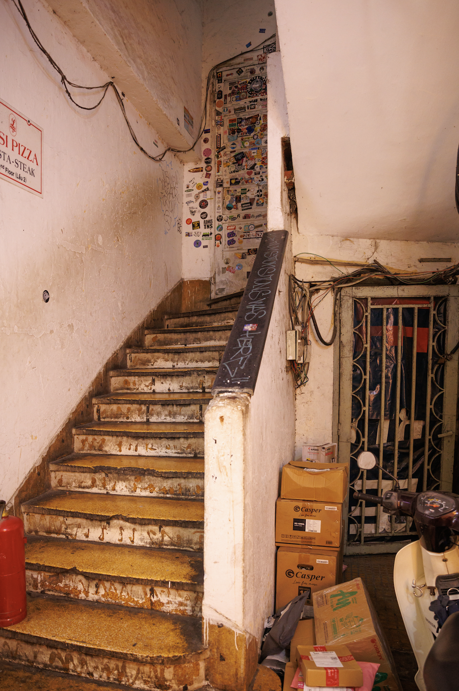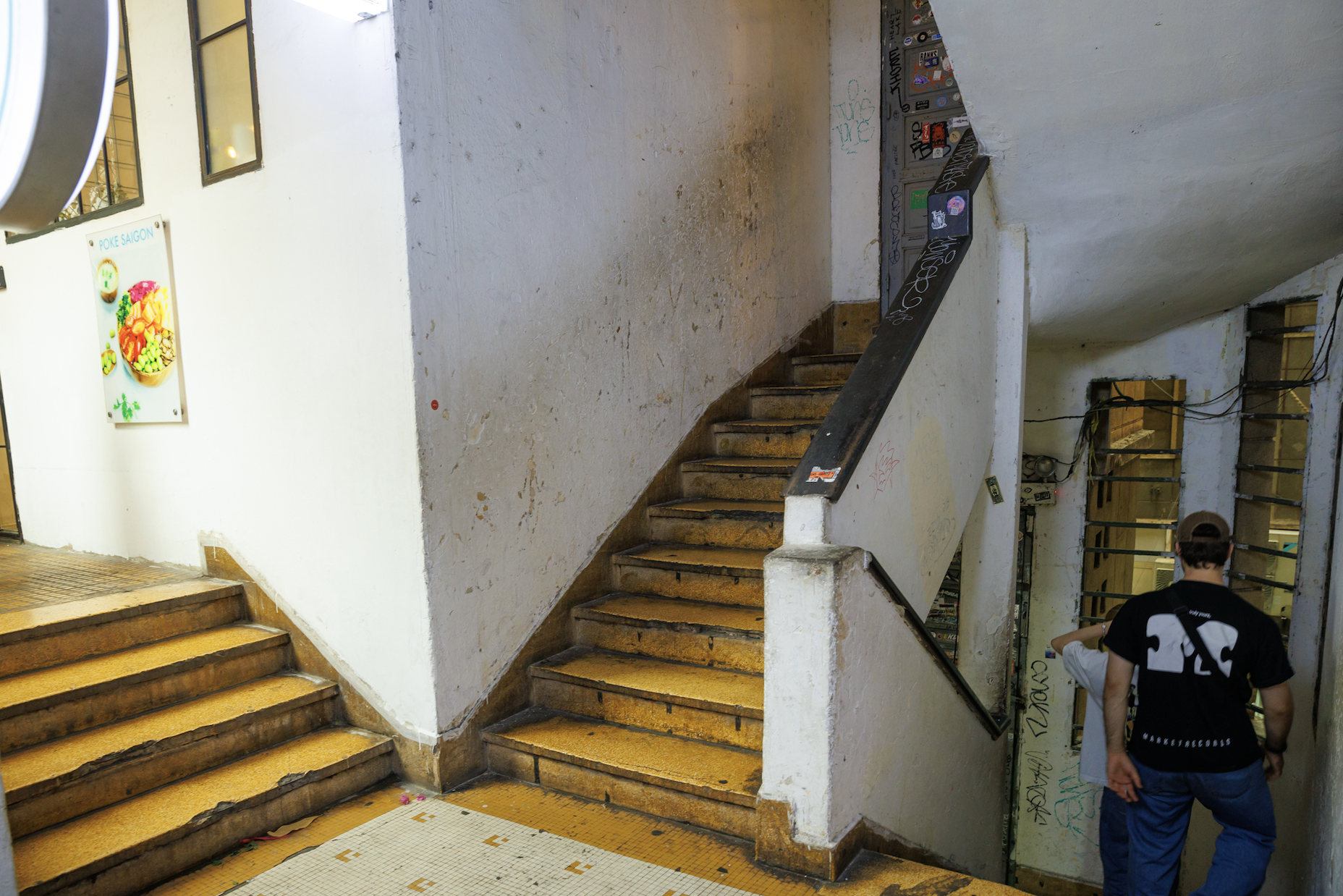 Đối lập hoàn toàn với vẻ ngoài vừa được tân trang, bên trong lòng tòa nhà vẫn lưu giữ trọn vẹn những kiến trúc đặc trưng. Bước qua cánh cửa dẫn vào toà nhà, du khách sẽ bắt gặp những mảng tường cũ kỹ, chiếc cầu thang bộ nhuốm màu xưa với những vết sờn của gạch đá mài. Nét cổ kính ấy vẫn hiện hữu qua những hàng cửa sổ gỗ và không gian giếng trời đặc trưng, nơi nhịp sống của những cư dân lâu năm vẫn lặng lẽ trôi qua giữa sự nhộn nhịp của quán xá.