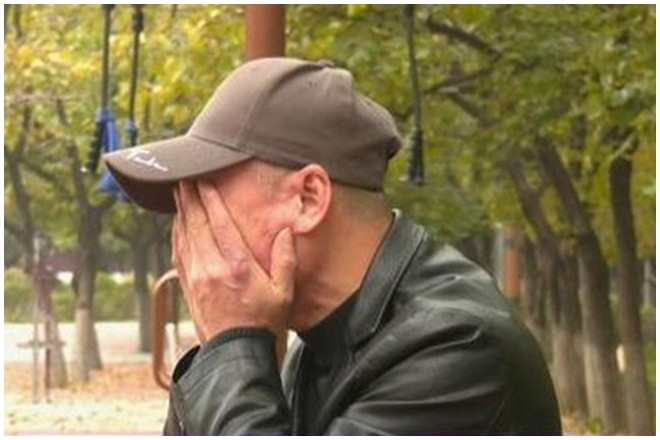 Người đàn ông bật khóc khi nghe cuộc điện thoại của con trai bà Mã. Ảnh: QQ