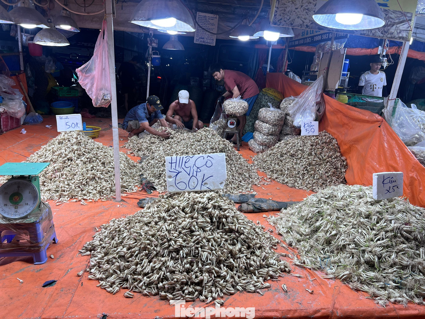 Từ đêm đến rạng sáng, hàng trăm tấn kiệu liên tục được xe tải đưa về chợ. Mỗi đêm, các vựa lớn bán ra từ vài tấn đến hơn chục tấn kiệu. Cao điểm có thời điểm lượng hàng nhập về lên tới 50 – 70 tấn/ngày, tạo nên cảnh mua bán tấp nập nhưng cũng khiến giá bị “neo” ở mức thấp.