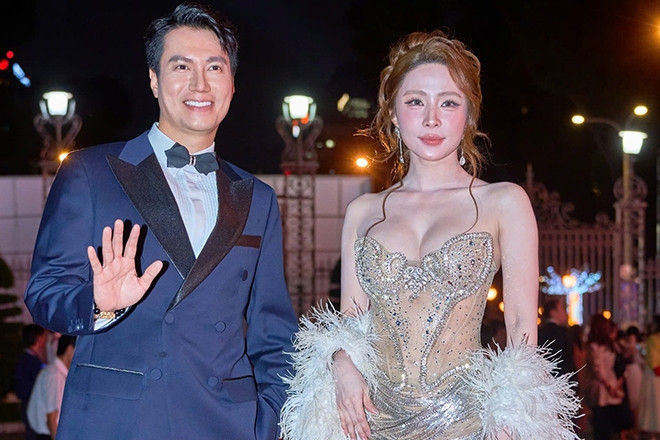 Diễn viên Minh Tiệp và bà xã là 1 trong những vị khách đầu tiên xuất hiện trên thảm đỏ. Những ngày qua, anh đồng hành cùng Cục Điện ảnh tổ chức các hoạt động bên lề LHP Việt Nam.