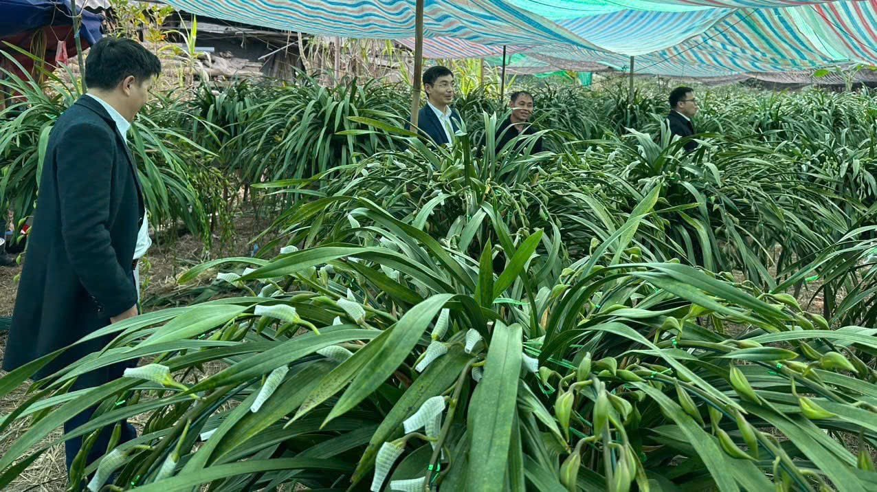 Xã Tả Phìn được mệnh danh là “thủ phủ” của địa lan Trần Mộng. Theo chính quyền địa phương, vụ hoa Tết năm nay, địa phương dự kiến cung cấp ra thị trường trên 20.000 chậu địa lan. Trong ảnh: Lãnh đạo UBND xã Tả Phìn đã trực tiếp xuống các điểm tập kết tránh rét cho hoa lan tại xã Cốc San để thăm hỏi, động viên các hộ nông dân.