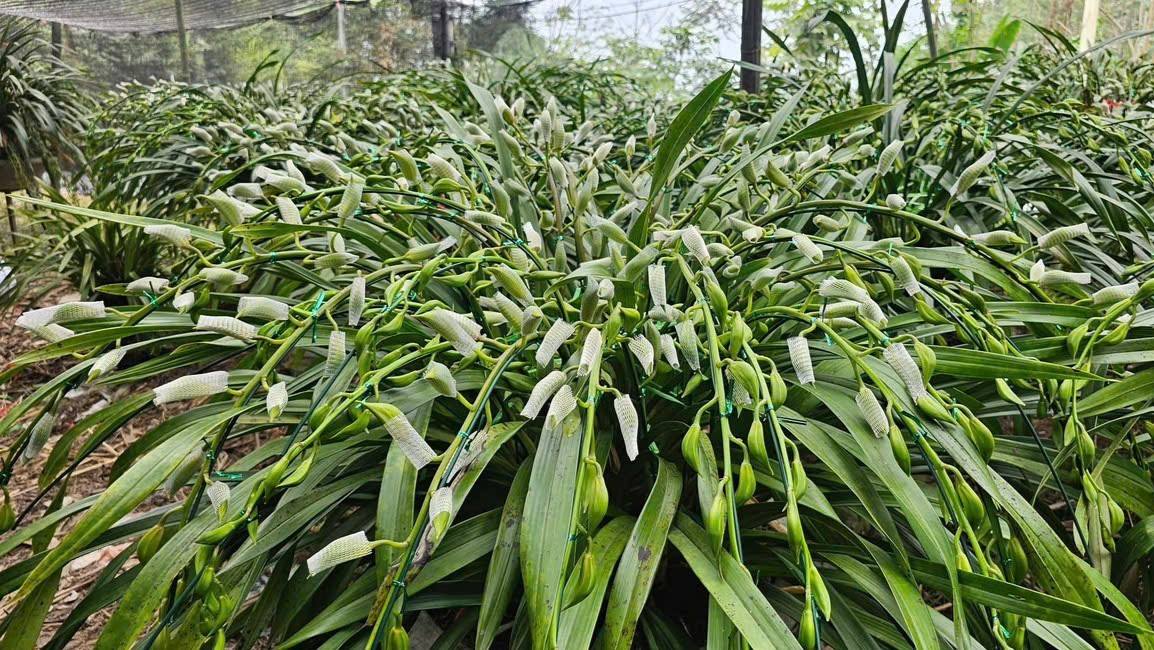 Lan được người dân buộc ngồng để tạo thế, đồng thời bọc nụ nhằm kiểm soát thời điểm nở.