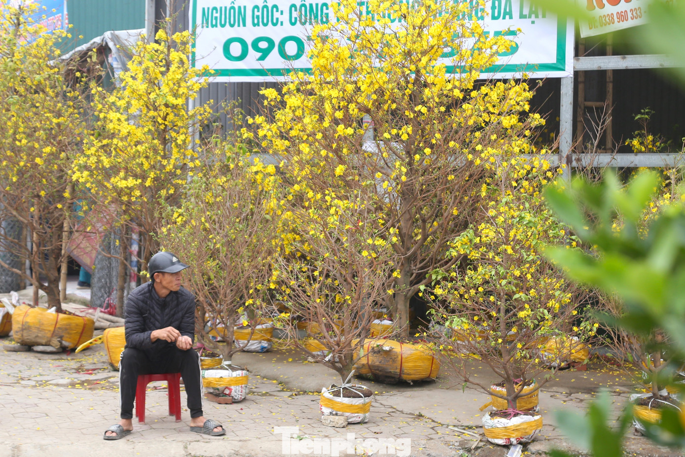 Quất được treo biển sale đồng giá, đào hạ xuống “kịch sàn” để xả hàng, thế nhưng, khách vẫn lác đác, người bán ngồi chờ trong tâm trạng thấp thỏm khi Tết đã cận kề mà hàng còn đầy vườn.