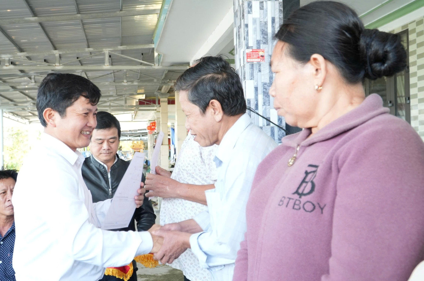 Lãnh đạo Đảng ủy, UBND xã Phú Lộc trực tiếp trao "sổ đỏ" cho dân Vụng Than ngay tại khu dân cư.